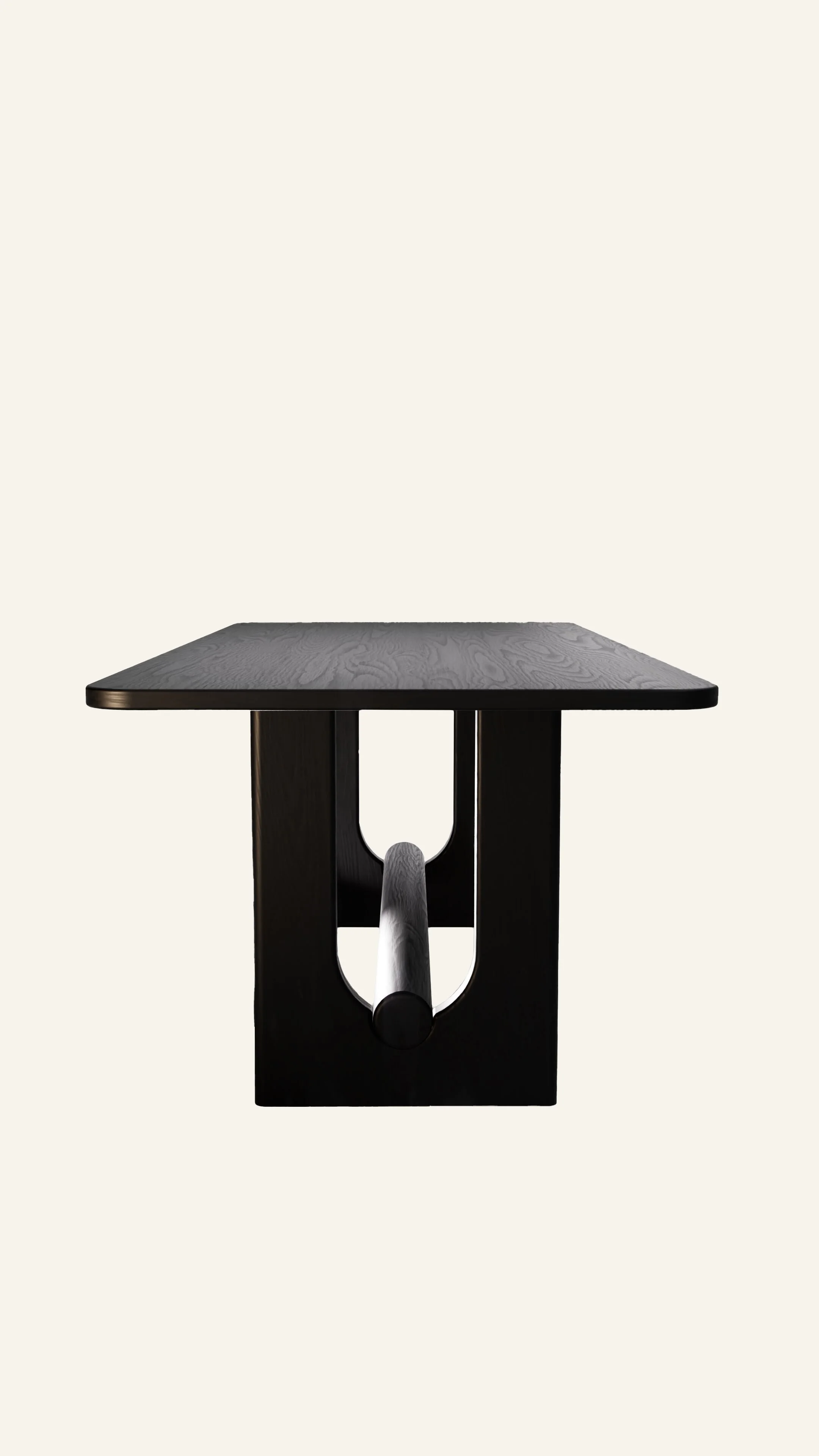 Inspired by sacred gateways. Charcoal-toned wood feels less crafted, more discovered—like an unearthed artifact meant to hold presence.